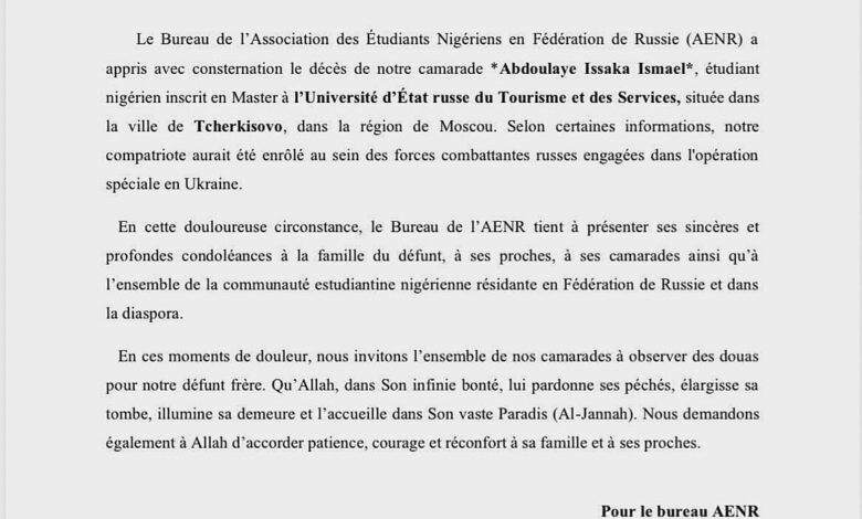 The Niger student, whose identity has been withheld pending family notification, was killed while serving with Russian forces, sources said. His death has drawn attention to the wider issue of foreign nationals fighting and dying in a conflict far from their home countries.