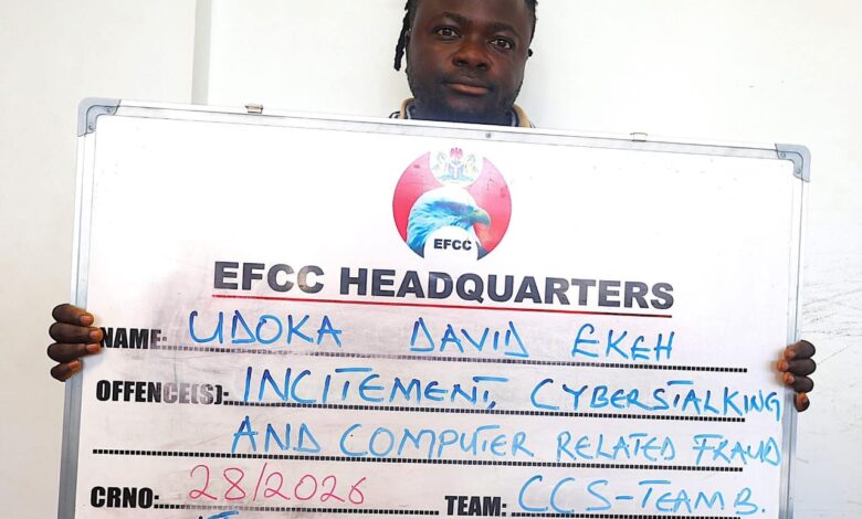 Operatives of the Economic and Financial Crimes Commission, EFCC, have arrested Udoma David Ekeh, a Tiktok user, for spreading false information about the Commission and its officers.